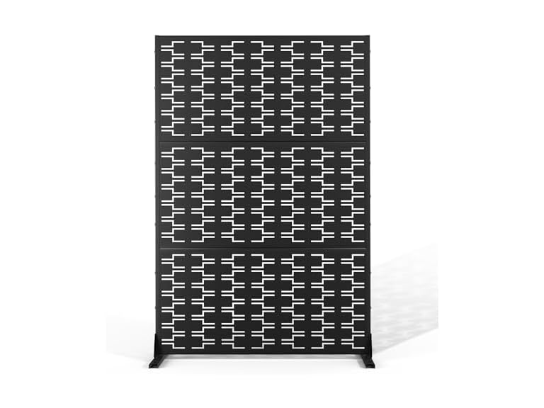 - DURABLE METAL MATERIAL:Made of 2mm galvanized steel and coated with robust and scratch-resistant powder, the outdoor privacy screen will be certainly durable and sturdy. Featuring precision laser cut from thick gauge galvanized steel and treated with UV inhibitors,the outdoor divider will not fade.