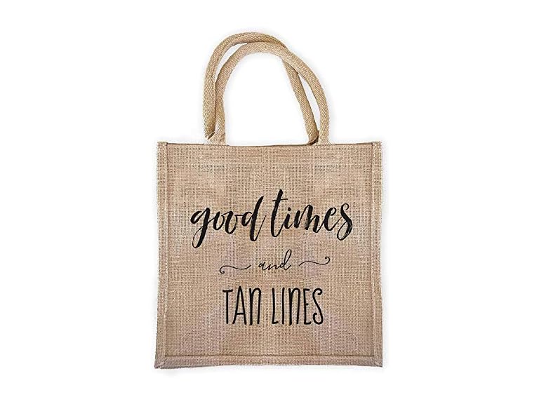 - Set Includes 6 Burlap Tote Bags a With Good Times and Tan Lines Print