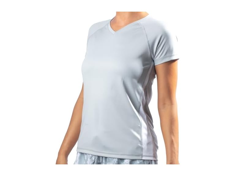 • (1) Kanu Surf Women's UPF 50+ Short Sleeved Active Swim Shirt Rashguard & Workout Top, Lt Grey/White, X-Large
