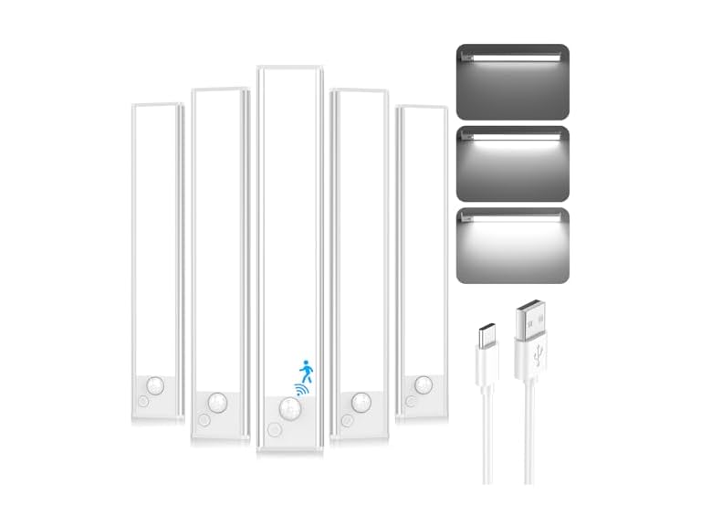 - Convenient Under Cabinet Motion Sensor Lighting: The Motion Sensor boasts detection angle of 120° and a sensing range of 10FT, ensuring comprehensive coverage of large areas and enhancing both ease of use and comfort. Additionally, the rechargeable under cabinet lights automatically switch off after 20 seconds of inactivity, promoting energy efficiency. By eliminating the need to search for switches in the dark, they offer significant convenience to you and your family