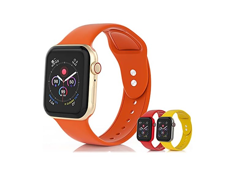 - ⌚【Skin-Friendly Premium Material】This Apple watch band is made of premium soft and breathable silicone, which is lightweight, smooth, durable, waterproof and flexible. The comfortable and light touch feeling will free your wrists all day.
