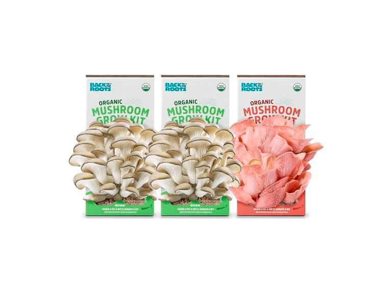 - (1) Back to the Roots Organic Mushroom Grow Kit 3-Pack: Oyster, Oyster & Pink-Harvest Gourmet Mushroom in Just 10 Days