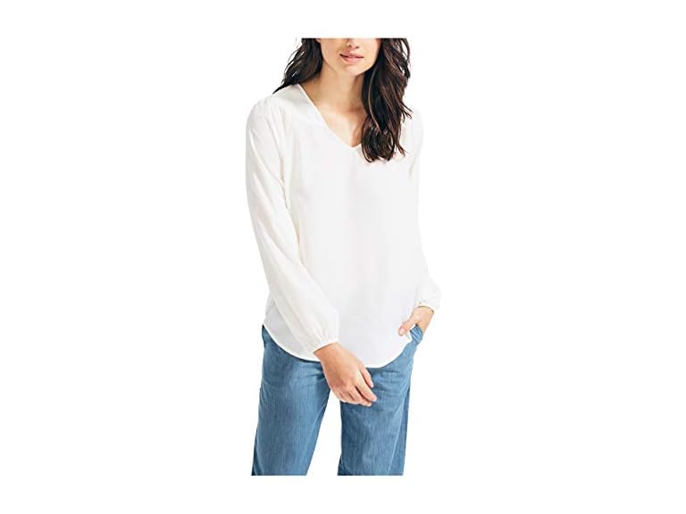 - (1) Nautica Womens Women's Long Sleeve V-Neck Woven Shirt Blouse, Marshmallow, Large US