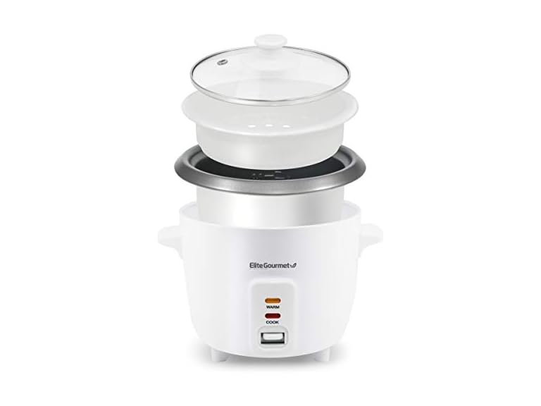 - (1) Elite Gourmet ERC-006NST# Electric Rice Cooker with Non Stick Inner Pot Makes Soups, Stews, Grains, Cereals, Keep Warm Feature, 6 Cups, White