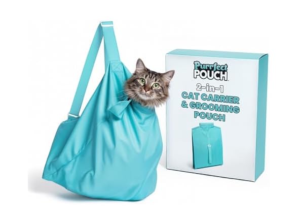 - 2-IN-1: CAT CARRIER & GROOMING POUCH. Purrfect Pouch cradles them in comfort & help keeps them CALM.