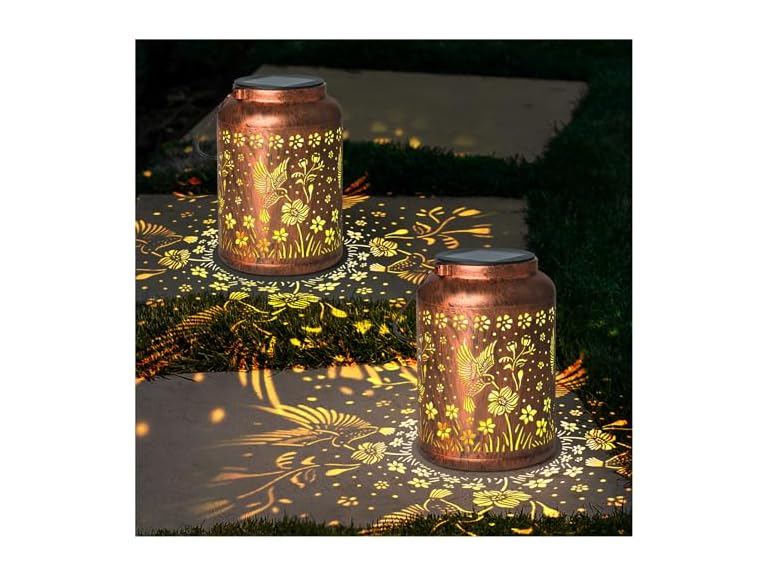 - Exquisite Decoration Design: The retro appearance, with gold copper color and hollow out metal veneer, the solar outdoor lanterns casts bright and warm light in darkness, accompanied by gorgeous and graceful Hummingbird patterns, adding a beautiful atmosphere to the surrounding environment.