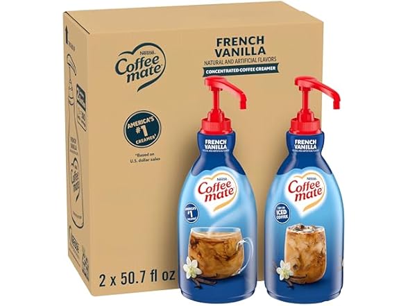 - Flavored Coffee Creamer: Nestle Coffee mate French Vanilla Flavored Liquid Concentrate Pump Bottle adds a rich and creamy vanilla flavor to your cup of coffee