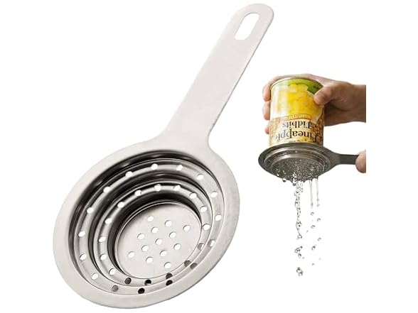- Our Universal can strainer for canned goods food grade stainless steel tuna can drainer is a versatile, easy to clean, with handle that is dishwasher safe. Filtering out excess liquids from your cans is made easier with this can straining utensil.