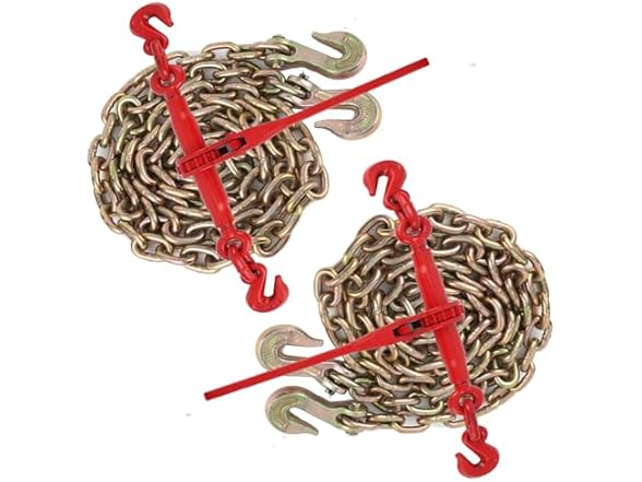 - 3/8" -1/2" Chain Binder, 3/8"×10ft Chains with 2 Binders and 2 Chains, Grade 70, Load Binder for Binder Chain with Grappling Hook, for Industrial, Agricultural, Logging, Towing Applications