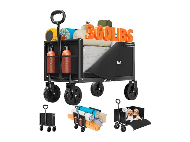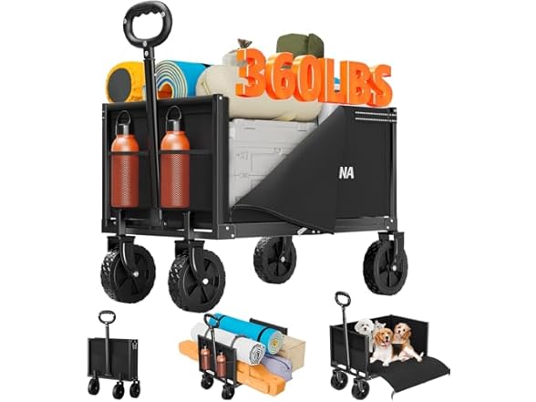 - 【Sturdy and Durable Wagons Carts Foldable 】: The wagons carts foldable is made of high-quality pressure-resistant alloy steel, featuring outstanding durability and load-bearing capacity. It can bear a load of up to 360LBS and is very suitable for loading heavy camping equipment, gardening tools and other sundries