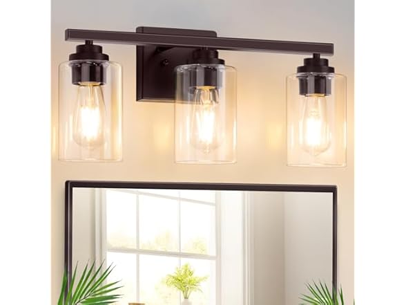 - Elegant & Durable Vintage Brown Design: Indulge in modern elegance with our vanity light fixture boasting a refined vintage brown finish on the lamp body complemented by sleek clear glass shades. The scratch-resistant and rust-proof coating ensures long-lasting elegance, making this bathroom light a timeless addition to your space. Elevate your space with this sophisticated bathroom vanity light that seamlessly blends with various decor styles, setting a new standard in home lighting aesthetics