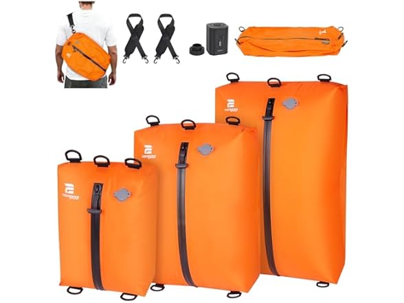 - 【3-Pack Set&Shoulder Straps】ESCRODOI travel vacuum kit includes 3psc compression packing cubes of three sizes—designed to organize everything from sweaters to gym clothes. Equipped with 2 adjustable shoulder straps, it also doubles as a gym bag, swim bag, or wet-dry separation pouch. Ideal for business travel, family vacations, and outdoor adventures.