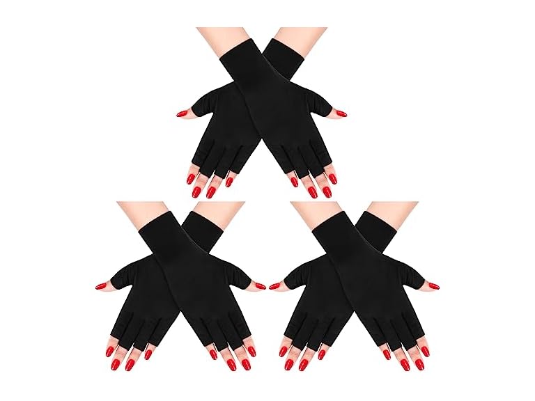 - HALF FINGER GLOVES DESIGN - UV light gloves for gel nails have half-finger design increases finger dexterity. Gel manicure gloves eliminates the need to repeatedly put on and take off gloves for nails uv light, keeps hands cool, and allows you to easily use your phone.