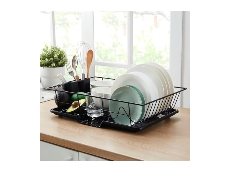 - ✅ COMPLETE 3-PIECE SYSTEM 🧺 – Includes dish rack, drainboard & utensil holder for efficient dish drying at the sink or countertop—perfect for everyday kitchens & compact spaces 💧🍽️🏠