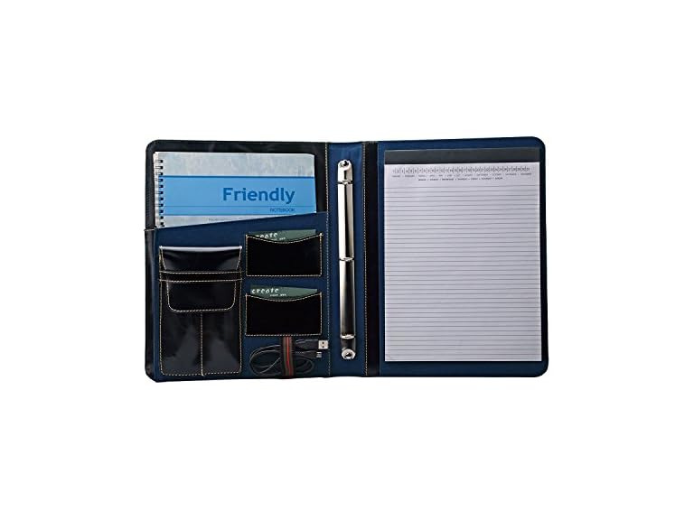 - 3 Ring Binder Portfolio Organizer, Leather Padfolio with 3 Ring Binder and A4 Notepad Notebook Holder