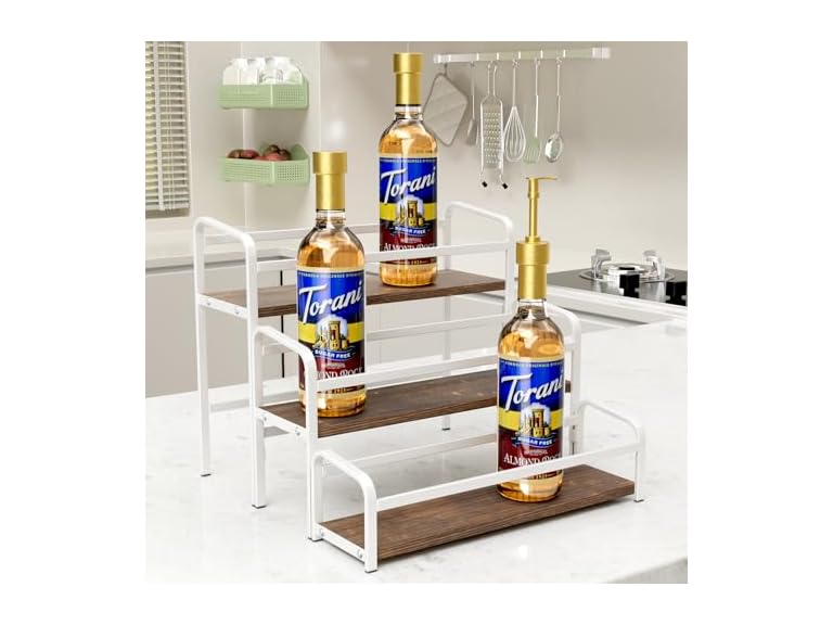 - 🍋【Versatile Rack】This display rack not only designed for syrup bottles ,its versatility is also a good choice to organize olive oil, spices and other kitchen supplies.