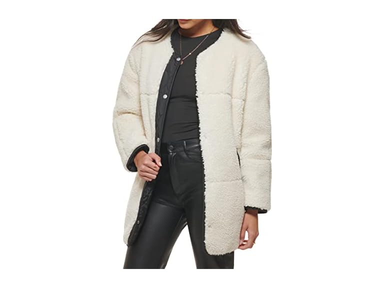 - STYLISH FEATURES: Quilted allover Sherpa fabric; Interior onion quilted fabric; Midlength.
