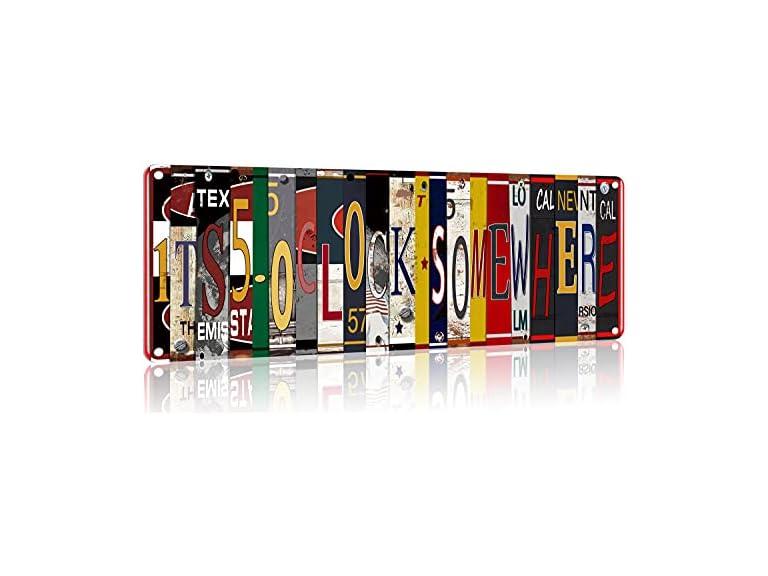 - (1) Saraheve Five O Clock Somewhere Unique Metal Wall Decor for Home, Bar, Diner, Pub, 16 x 6 Inches,Fun Kitchen Decor, Unique Drinking Sign, Funny Bar Signs, Vintage Kitchen Signs