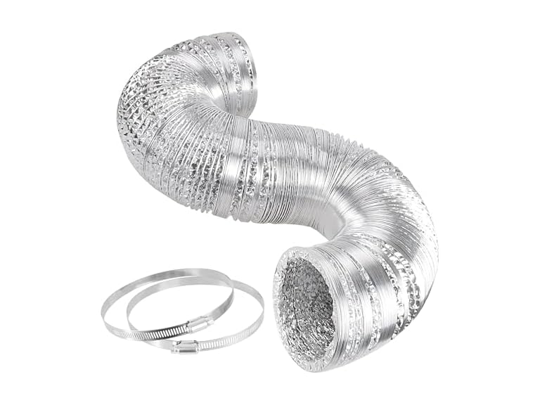 - Simple Deluxe 12 Inch 25 Feet Ducting, Non-Insulated Flex Air Aluminum Foil Duct for Dryer Vent Hose, Heating, Cooling, Ventilation, Exhaust, 2 Clamps Included, Silver