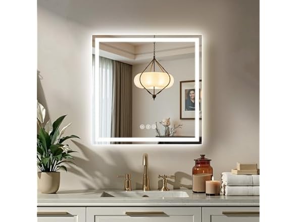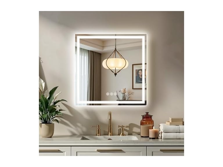 - 【Dimmable & 3 Colors 】Rpoesx LED Mirror for Bathroom with 3 colors (3000K/4000K/6000K) + fine-tune brightness with stepless dimming. just easily controlled by the three touch buttons, customize your comfortable atmosphere.The memory function will record the light settings to next turning on
