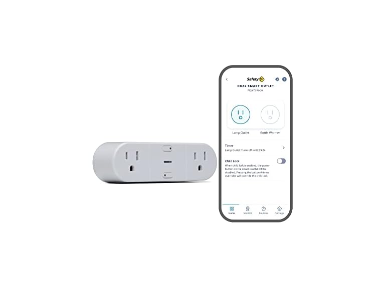 - MAKE ALMOST ANY ELECTRICAL DEVICE SMART. From lamps to bottle warmers, control almost any electrical device by making it smart. No hub required. This outlet uses the Safety 1st Connected App which is the only app that empowers parents to create the optimal environment, set the mood, monitor, and comfort their child—anytime, from anywhere. This easy-to-use, family friendly app seamlessly controls and manages every device in the Connected Suite giving parents the confidence and peace of mind they need to stay connected to their child even when they’re apart.