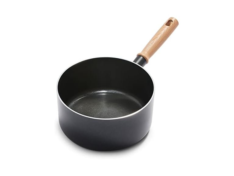 - (1) GreenPan Hudson Healthy Ceramic Nonstick, 1.6 QT Saucepan Pot, Vintage Wood Inspired Handle, PFAS-Free, Dishwasher Safe, Black