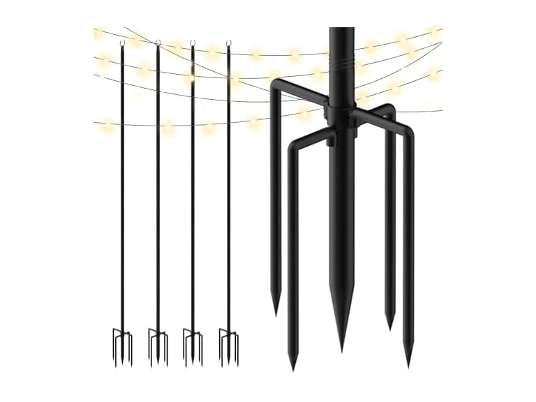 - Unmatched Stability – 5-Pronged Base:Designed with a heavy-duty 5-pronged base, our string light poles anchor firmly into grass or soil, offering superior stability. No more wobbling, bending, or tipping—even in strong winds