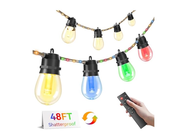- (1) Brightever LED Outdoor String Lights Waterproof, RGBW 48FT, 15 S14 LED Bulbs