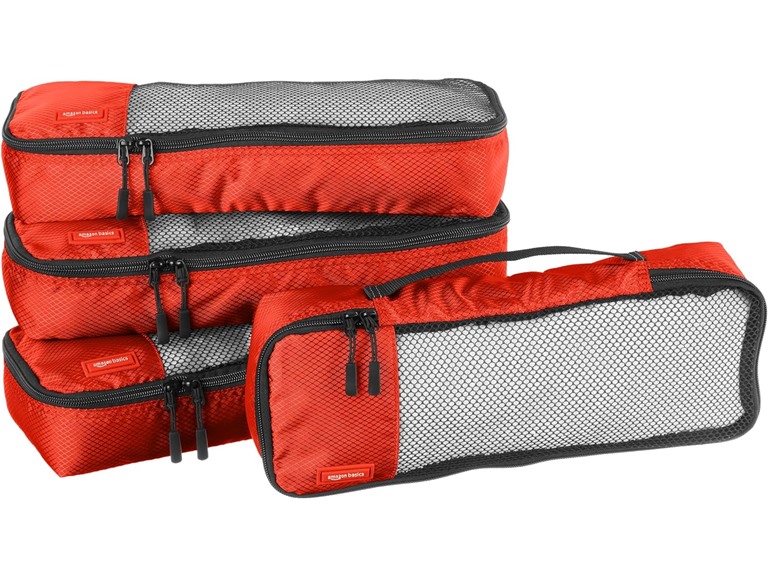 - (1) Amazon Basics 4-Piece Packing Travel Organizer Cubes Set - Slim, Red