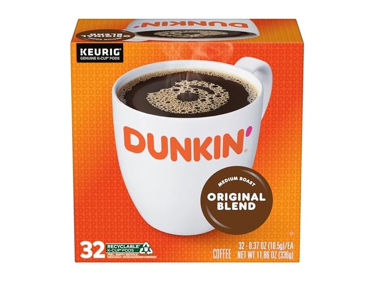 - (1) Dunkin' Original Blend Medium Roast Coffee, 32 Keurig K-Cup Pods