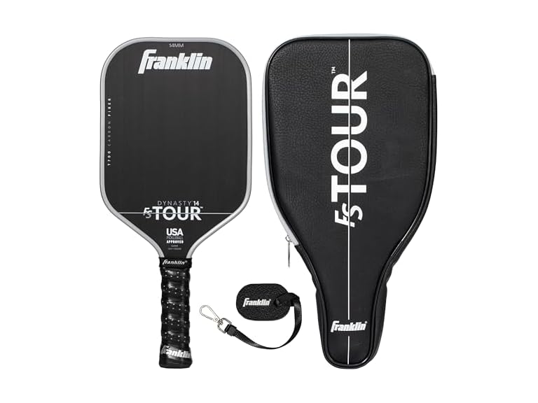 - (1) Franklin Sports Pro Pickleball Paddle Set - FS Tour Series Carbon Fiber Pickleball Paddle, Paddle Cover + Paddle Eraser - Official USA Pickleball (USAPA) Approved Paddle Set - Dynasty 14mm Core - Grey