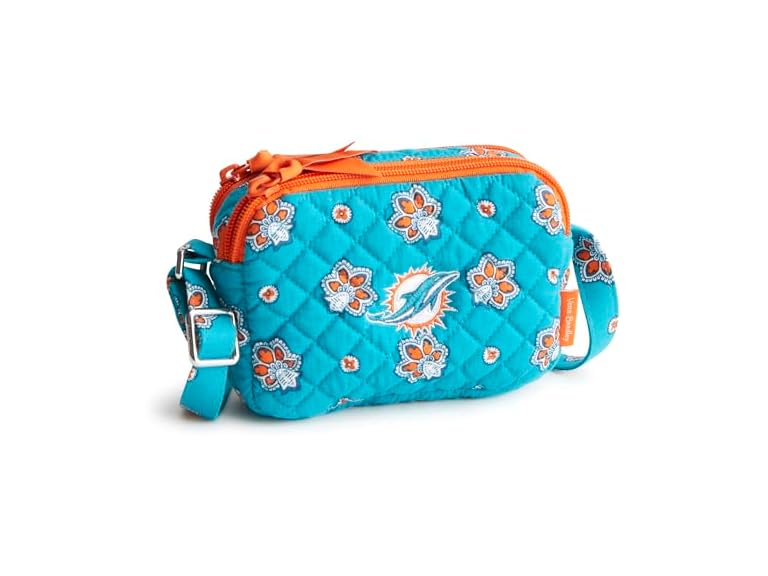 - (1) Vera Bradley Women's Cotton NFL Small Stadium Crossbody Bag (Multiple Teams Available), Miamidolphinsonaqua/Orangebandana