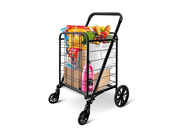 - Foldable and Portable - The folding shopping cart easily folds flat for convenient storage or carrying. Lightweight and travel-friendly, our rolling utility cart is the perfect companion for outdoor travels and shopping excursions.