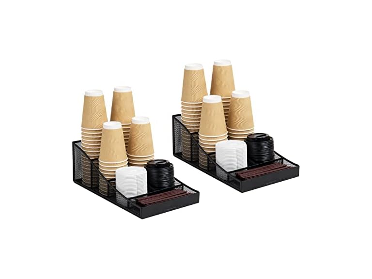 - (1) Mind Reader Cup and Condiment Station, Set of 2, Countertop Organizer, Coffee Bar, Metal Mesh, 8.5" L x 14.5" W x 5.25" H, Black