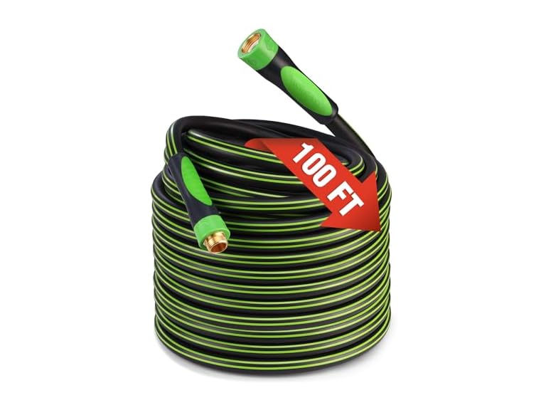 - Lightweight and Flexible: This garden hose has a wall thickness of 3mm (not 2.5mm), a three-layer structure made of rubber and PVC, and the middle layer is a braided material. Lighter than traditional garden hoses, flexible for easy handling.