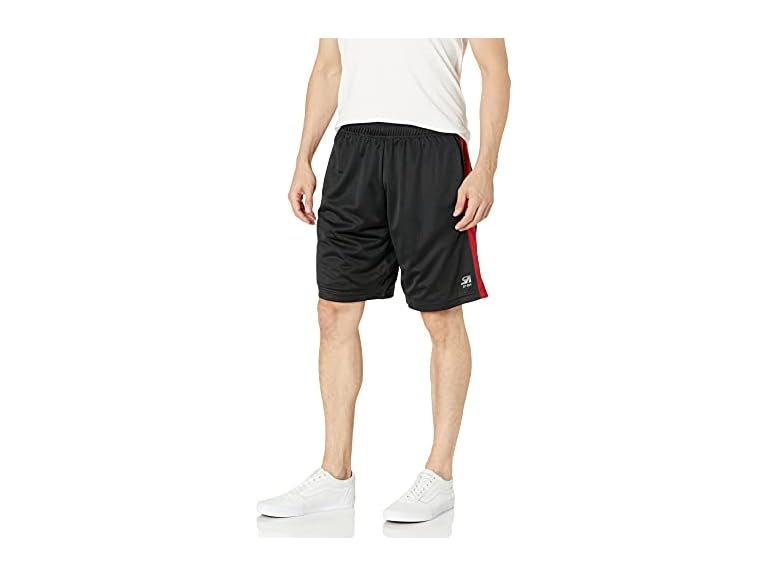 - Southpole Men's Athletic Gym Mesh Shorts with Pockets, Lightweight, Quick Dry, Breathable, Black/Red, Small