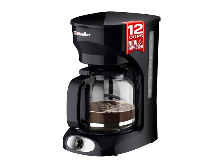 - (1) Mueller 12-Cup Drip Coffee Maker - Borosilicate Carafe, Auto-Off, Reusable Filter, Anti-Drip, Keep-Warm Function, Clear Water Level Window Coffee Machine, Kitchen Essentials & Accessories