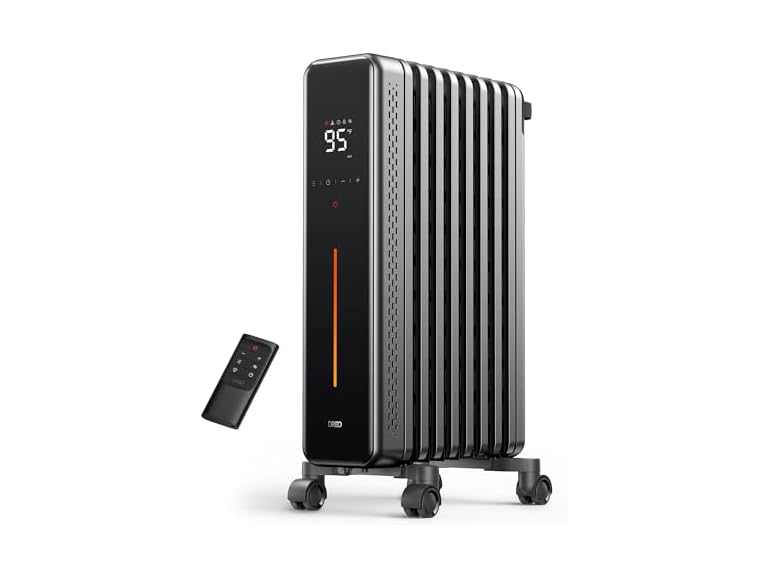 - Top-tier Whole Room Heat: The eight M-shaped fins in this oil-filled radiator heater ensure a 59.5% higher dissipation area, providing wide and even distribution of warmth throughout your home while maintaining a safe temperature on the surface of the radiator to avoid scalding. Whether used in any room, it always delivers comfortable and consistent warmth