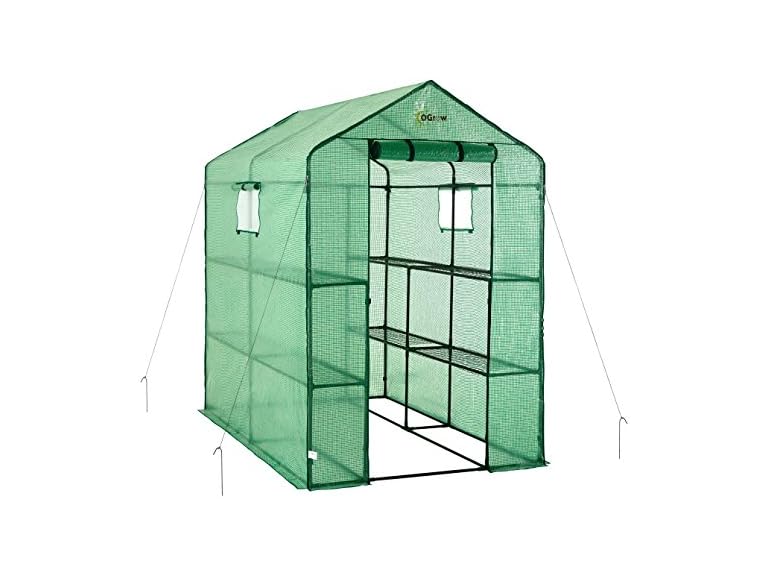 - VERSATILE & PORTABLE: The OGrow Machrus Greenhouse Kit is a portable greenhouse with shelves, featuring a convenient walk-in design. It serves as a pop-up greenhouse that can be easily set up and moved around, providing a flexible solution for both outdoor and indoor gardening needs. It has a roll up zippered entry door for easy access and complete closure.