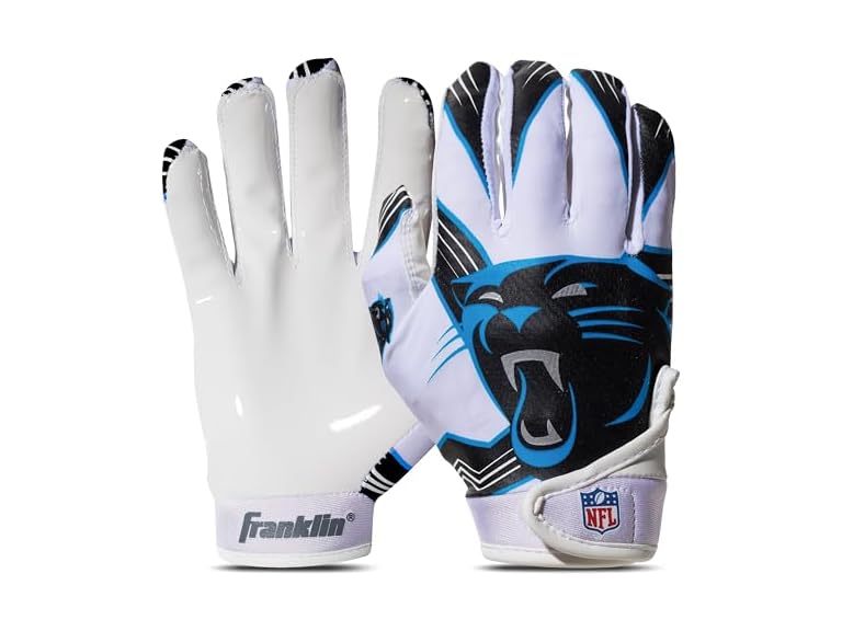 - (1) Franklin Sports Carolina Panthers Youth NFL Football Receiver Gloves - Receiver Gloves For Kids - NFL Team Logos and Silicone Palm - Youth M/L Pair