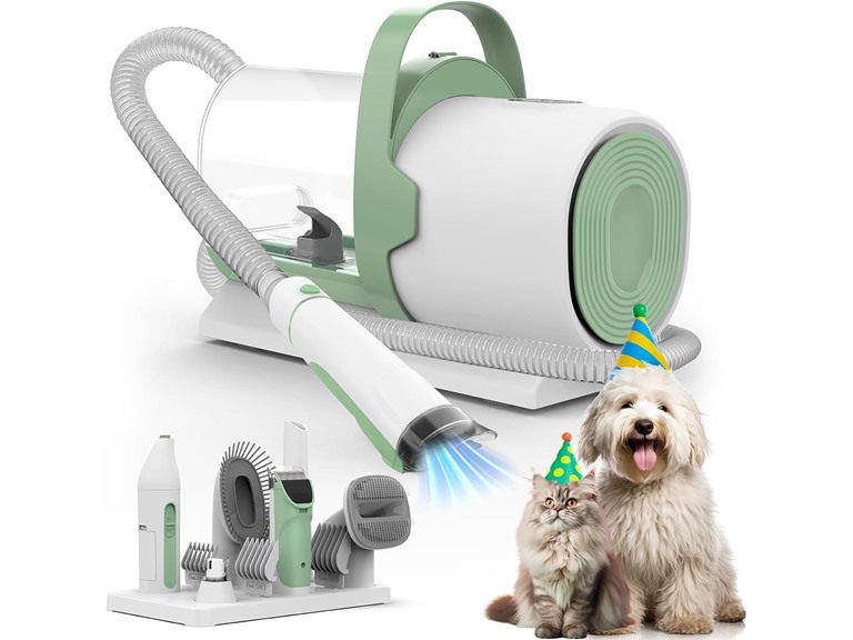 - š¢ć7-In-1 Pro Pet Grooming KitćRely on dog grooming vacuum for one-stop pet care and refine your petās life. Suction and grooming all in one. Electric clippers and sucking hair at the same time, effectively remove pet hair and fine dust and keep it neat. Dog paw trimmer and Nail grinder provide excellent cutting. Cleaning brush and Nozzle head brush for deeply clean, effectively sucking out loose hair and dandruff on the clothes, sofa crevices and carpet.