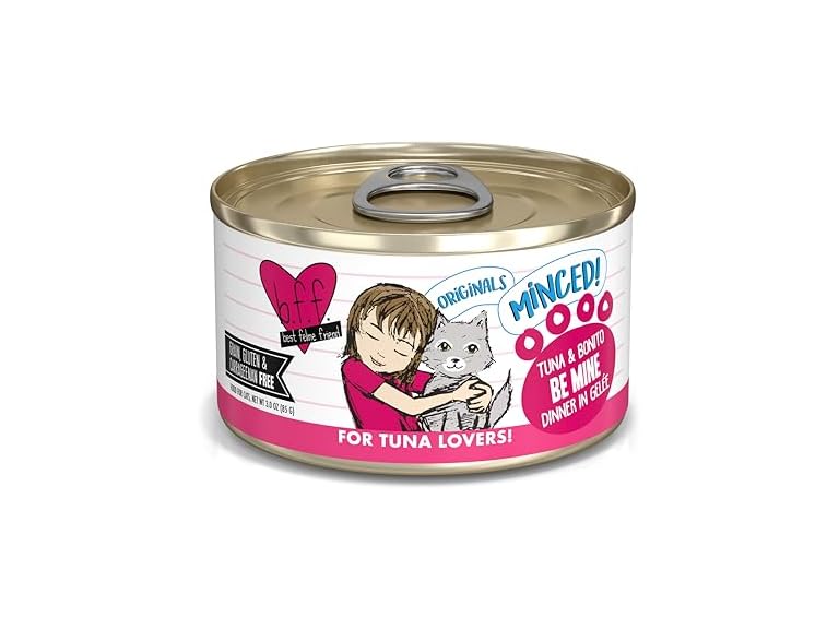 - (1) Weruva BFF Minced Natural Wet Cat Food, Tuna and Bonito Be Mine in Gelee, 3oz Can, Pack of 24