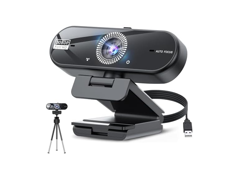 - 【Versatile Placement Options with Included Tripod】This webcam for pc comes with a compact tripod, offering 3 flexible placement ways: set it up on your desk for PC video calls, place it directly on flat surfaces for quick use, or clip it securely to your computer/laptop screen—perfect for adjusting height and angle to fit any space, whether you’re in a home office, classroom, or on the go.