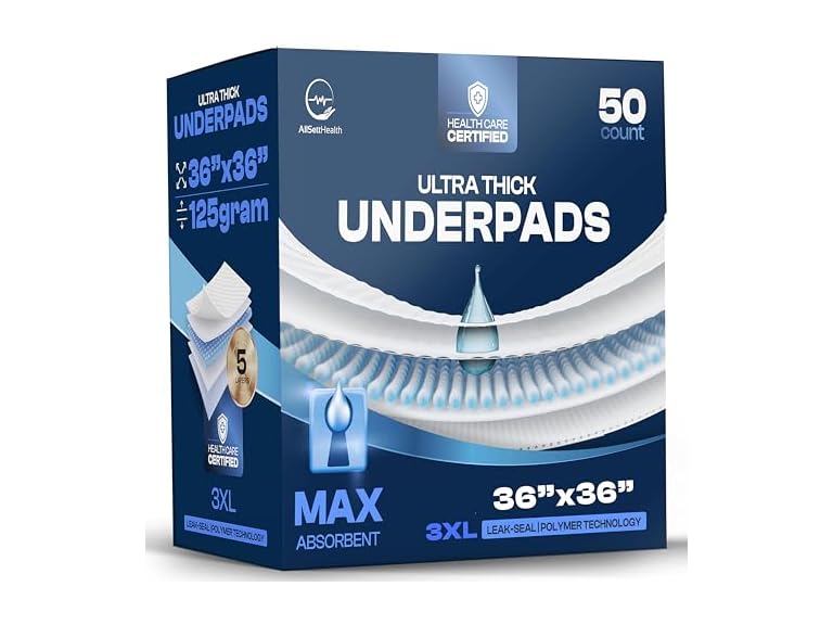(50 Ct) 125 Gram Incontinence Bed Pads Disposable for Adults 50 Pack XXL 36" x 36" Super Absorbent Waterproof Bed Liner, Pee Pads for Adults - Chucks Pads