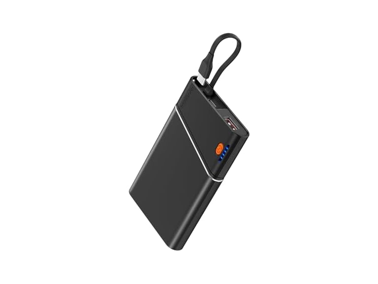 - Built-in USB-C Cable + Triple Charging--Ultra-durable built-in USB-C cable + dual ports let this power bank charge 3 devices simultaneously. Universally compatible with iPhone, Samsung, tablets, AirPods, and smartwatches.