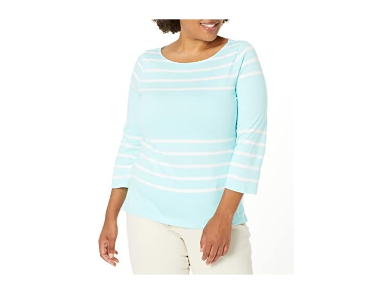 - (1) Nautica Women's Solids and Stripes Boatneck 3/4 Sleeve 100% Cotton Shirt Shirt, Aruba Blue, Large