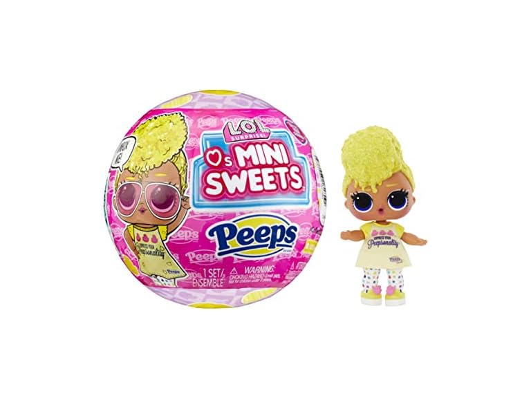 Introducing limited edition L.O.L. Surprise Loves Mini Sweets - Peeps! L.O.L. Surprise has partnered with iconic candy brand Peeps to bring you the fiercest Spring ever. Each doll has a unique style with shimmering, sparkly details that match your favorite Peeps treats! Unbox 7 surprises and get ready to unwrap all the ways you can celebrate with unlimited seasonal fun. Both Tough Chick and Cute Bunny are hopping into Spring with exciting goodies to share. Each LOL Surprise Loves Mini Sweets Peeps doll includes 7 surprises: (1) LOL Surprise Loves Mini Sweets Peeps doll; (2) Secret Message; (3) Outfit; (4) Shoes, (5) Bottle; (6) Accessory; (7) Sticker. Collect both Cute Bunny and Tough Chick! LOL Surprise collectible dolls with stylish hair, fun to dress outfits and many detailed accessory pieces make a perfect toy and playset for kids including 4- to 7-year-olds and up girls and boys for imaginative pretend play! As birthday gifts and gift for any special occasion, dolls provide hours of social play with siblings and friends! From MGA Entertainment, creators of LOL Surprise fashion and collectible dolls, Rainbow High™ fashion dolls, Na Na Na Surprise dolls, Bratz® fashion dolls, MGA's Dream Ella™ fashion dolls, MGA's Glitter Babyz™ baby dolls, Lalaloopsy™, Poopsie Surprise girls' dolls, Baby Born® Surprise baby dolls and collectibles, Little Tikes® kids' toys and many other favorite brands.