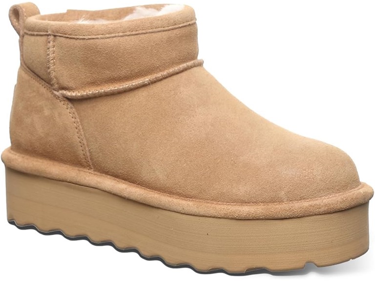 - COMFORTABLE HIGH-QUALITY MATERIAL: The BEARPAW Retro Shorty Women's Boot is the ideal winter boot that showcases a retro spin on our loveable suede ankle boots with a pop of color and extra lift. You can feel confident knowing these every day booties will keep you warm and dry on the foggy rainy days and winter nights.