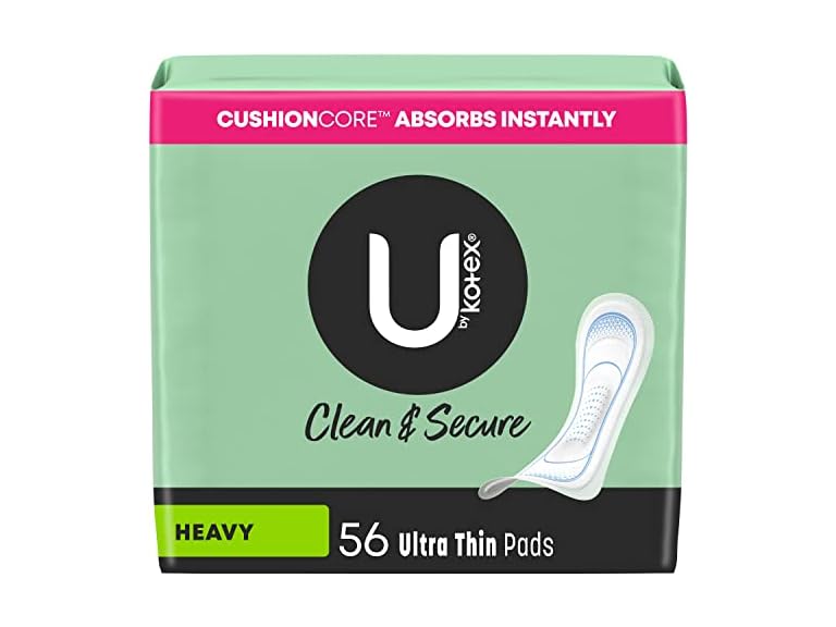 - U by Kotex Clean & Secure Ultra Thin Pads, Heavy Absorbency, 56 Count (56 feminine pads total)