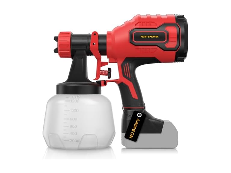 - [Brushless Motor & 1000ml/min High Flow Output]Powered by a durable brushless motor, this electric paint sprayer provides a consistent 1000ml per minute flow rate for efficient spraying and a smooth, professional finish on large surfaces.